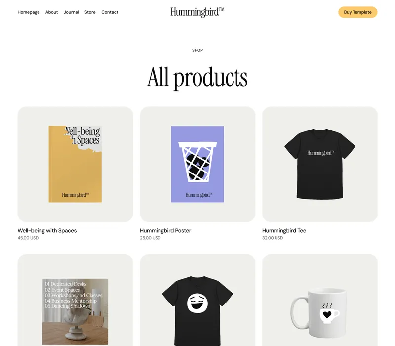 Hummingbird Template comes with eCommerce set up, so you can start selling your products straight away.