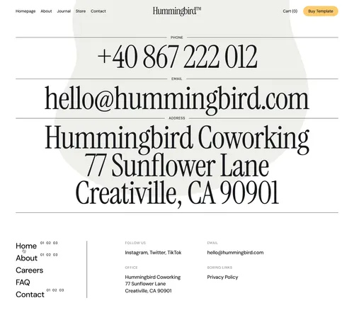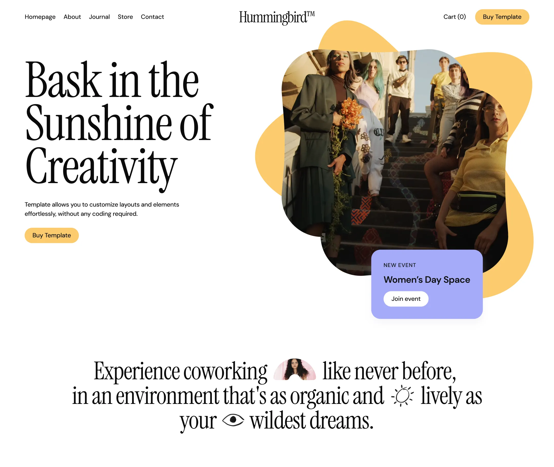 Created with the example of a coworking space, the Hummingbird Webflow template offers a modern and playful online presence for any business looking for a new website.